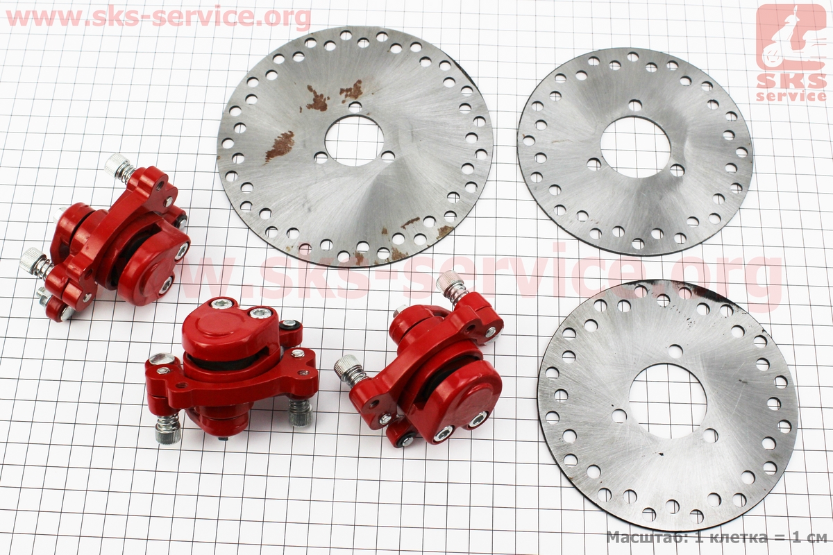 Тормозная механическая система передняя + задняя в сборе, к-кт 6 деталей