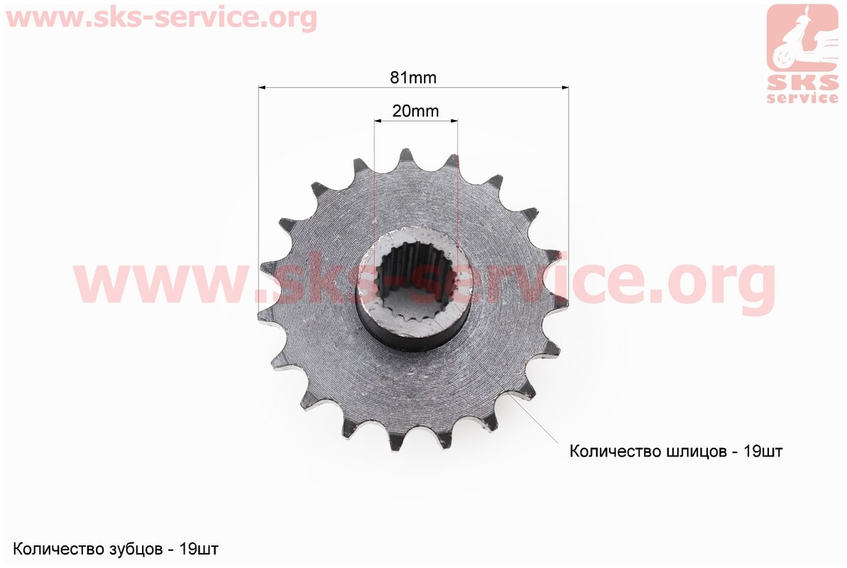 Звезда приводная задняя шлицевая 428-19T (втулка d=20mm, L=48mm)