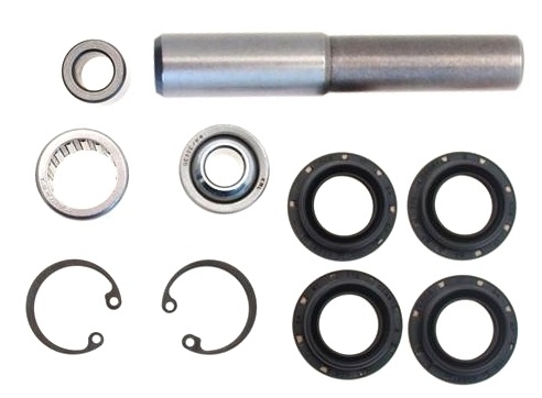 Комплект содержит: 2 распорные втулки, игольчатый подшипник, сферический подшипник, 2 стопорных кольца, 4 сальника.