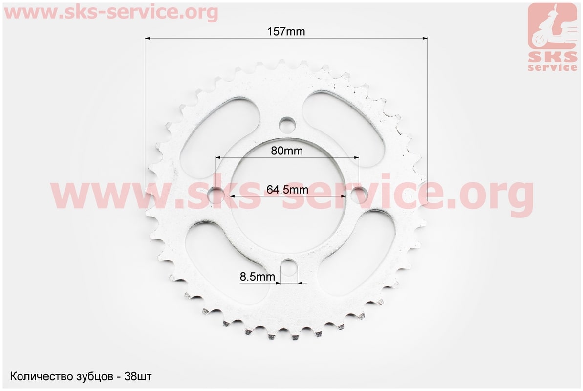 Звезда задняя 420-38T — d=64; 4отв.*80mm (ZS200/250)