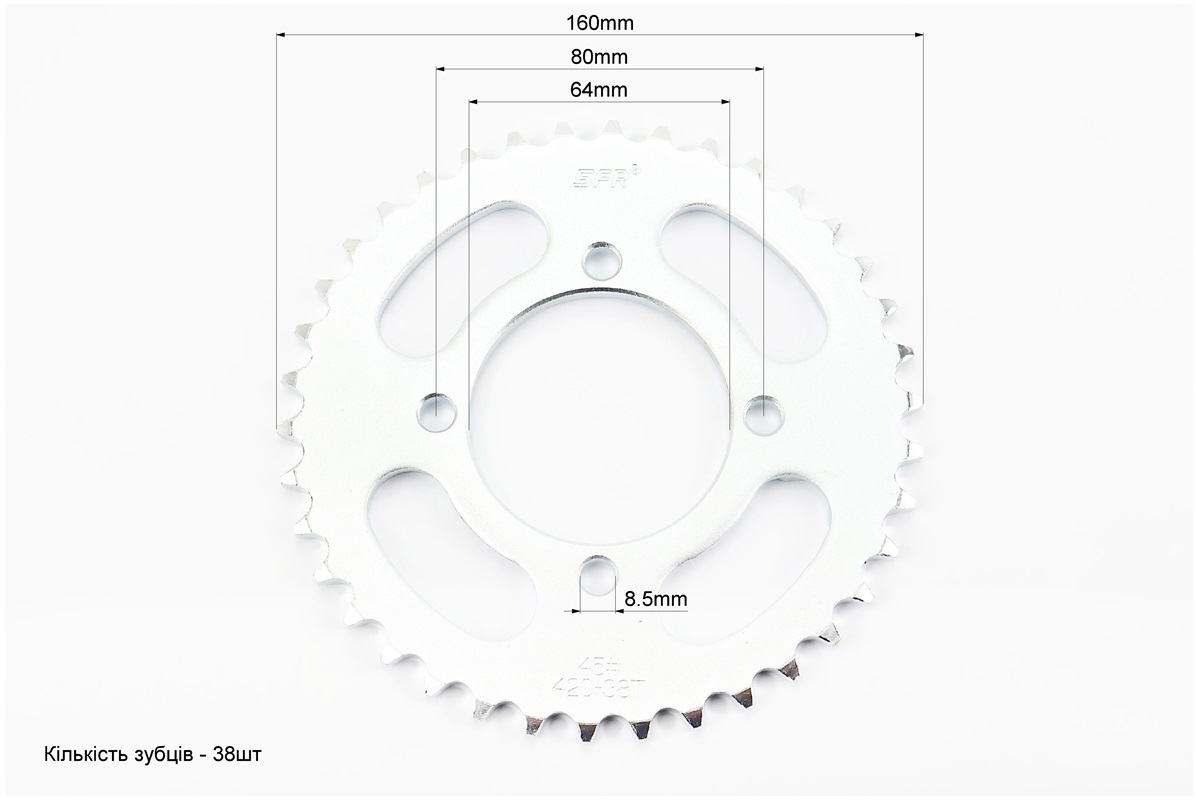 Зірка задня 420-38T — d=64; 4отв.*80мм (ZS200/250)