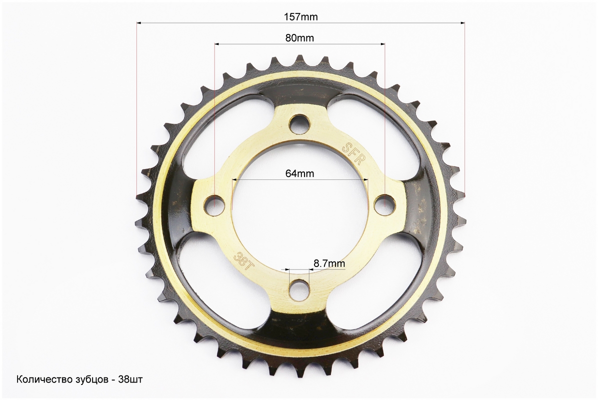 Звезда задняя FXD125 — 428-38T — d=64; 4отв.*80mm "каленая" Viper F5