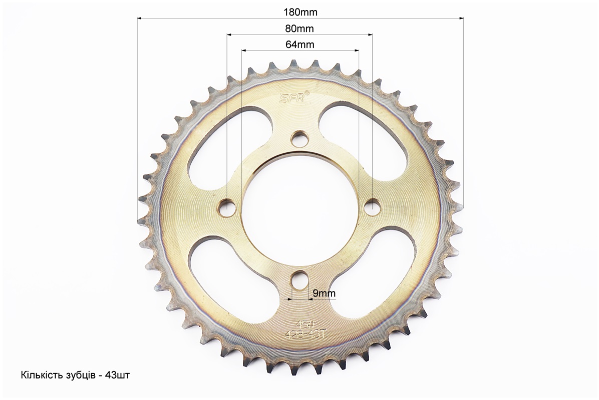 Зірка задня RS125 - 428-43T - d=64; 4отв.*80mm "гартована" Loncin- JL200-10/Yamaha YBR125