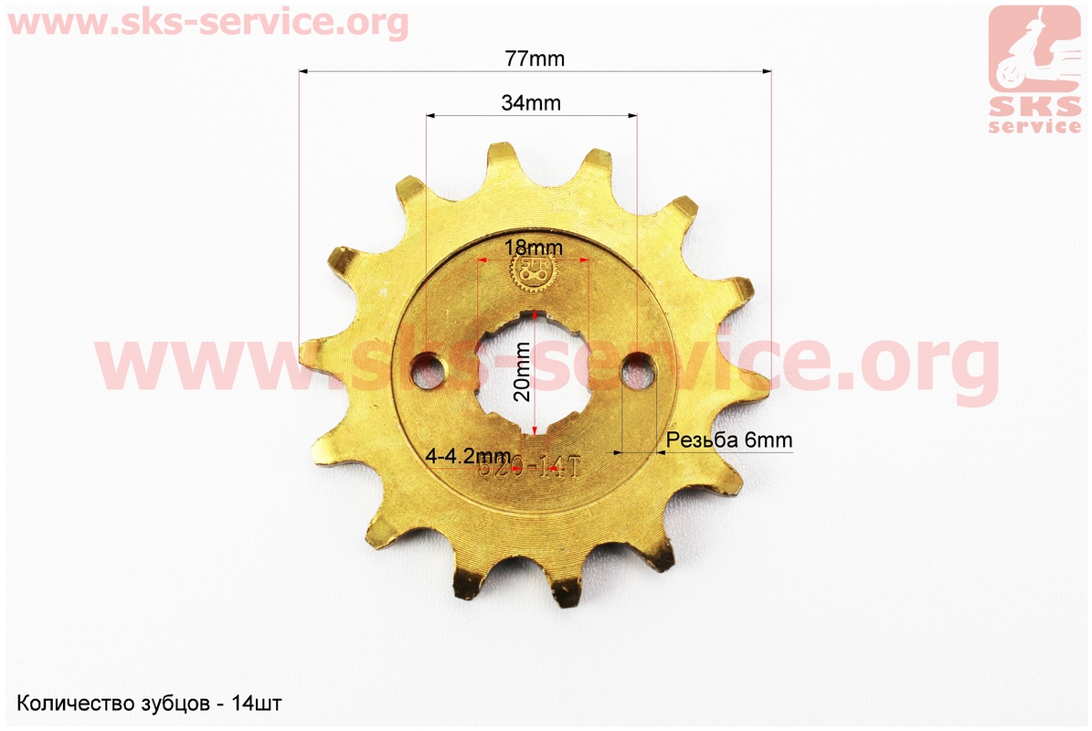 Звезда передняя CG/CB-520H-14T (шлиц 4мм) GOLD