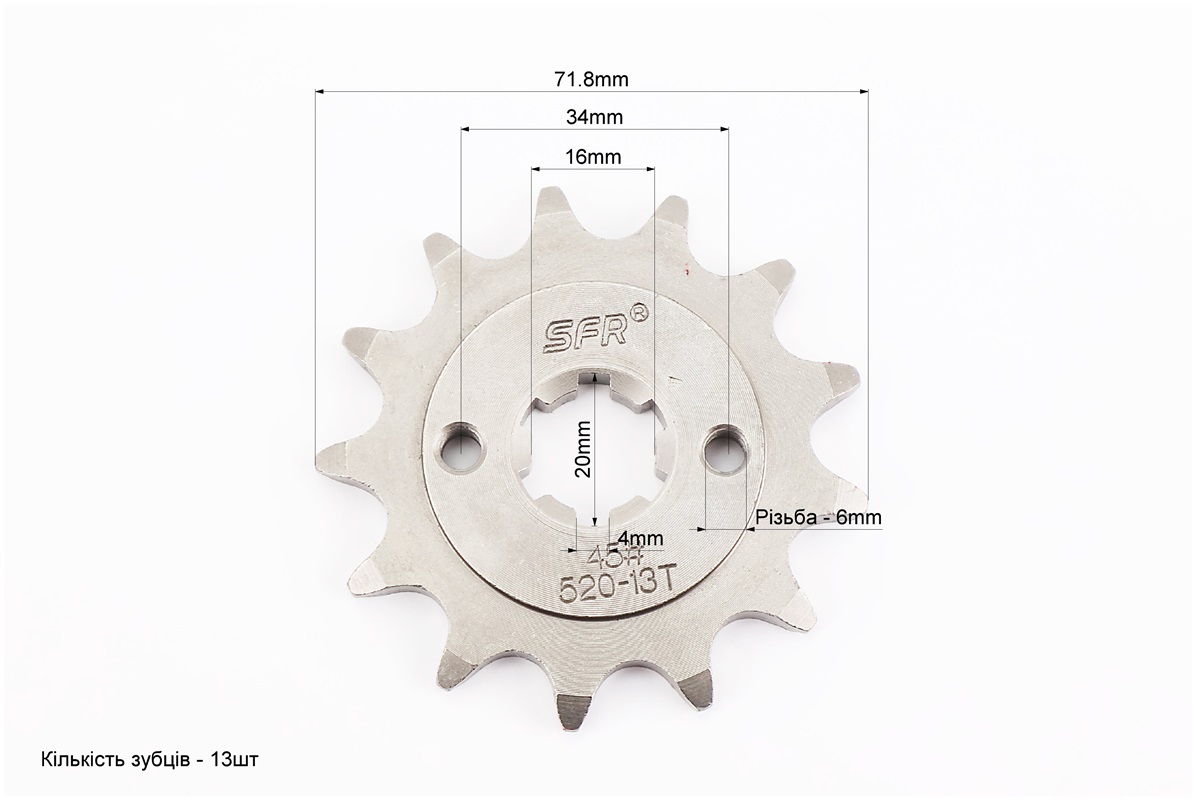 Звезда передняя CG/CB-520H-13T (шлиц 4мм) SHINERAY XY250GY-9A X-Trail 250/PULSAR P-180/NS-200/AVENGER 220cc