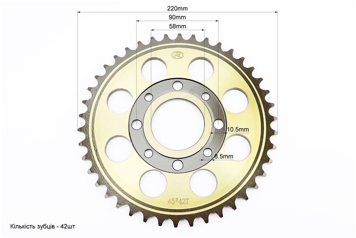 Звезда задняя 520-42T - d=58; 4отв.*90mm "каленая", PULSAR P-180cc/Loncin- LX200GY-7A