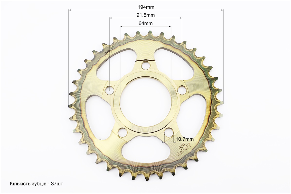 Звезда задняя 520-37T - d=64; 5отв.*91,5mm "каленая" V200; V250-F2