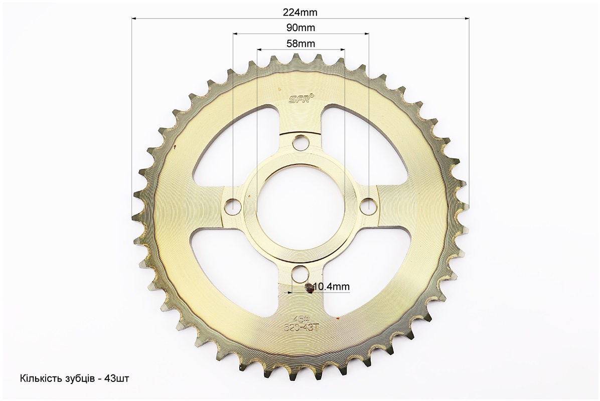 Звезда задняя 520-43T - d=58; 4отв.*90mm "каленая", PULSAR P-180cc/Loncin- LX200GY-7A