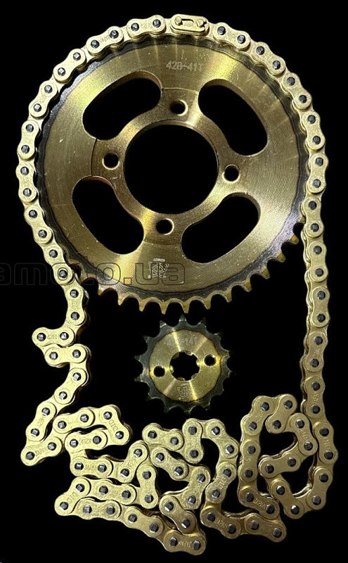 Звезды трансмиссии (пара) Delta 428-14T + 428-41T (+цепь 104L) золотая VDK-2