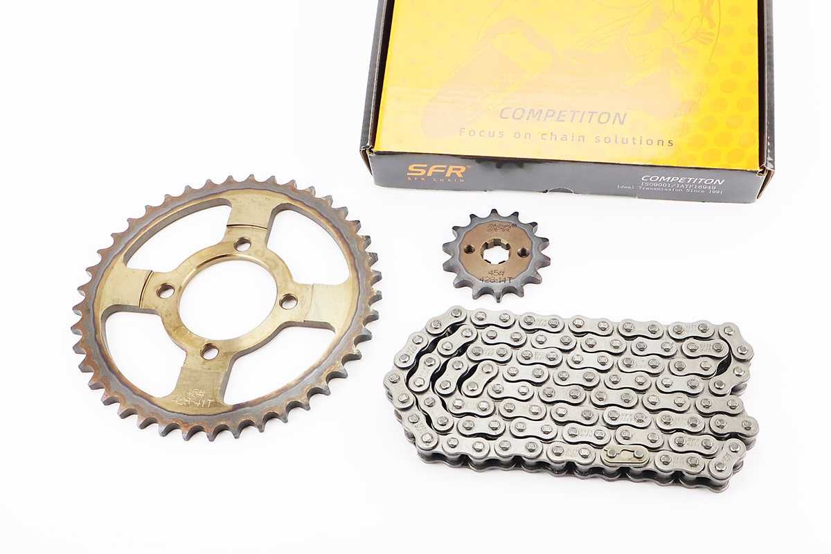 Звезды, цепь к-кт JH — 428H-104L+41T+14T (в коробке) "каленая"